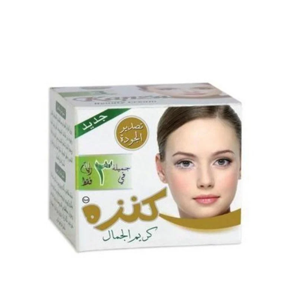 كنزة كريم الجمال، مميز للعناية بالبشرة، يُستخدم لتفتيح البشرة ومعالجة مشكلات مثل حب الشباب والتجاعيد والبقع الداكنة. يُعتقد أن الكريم يحتوي على مكونات مثل الألوفيرا، اللؤلؤ، وحمض الكوجيك، والتي تُستخدم عادةً في منتجات تفتيح البشرة.